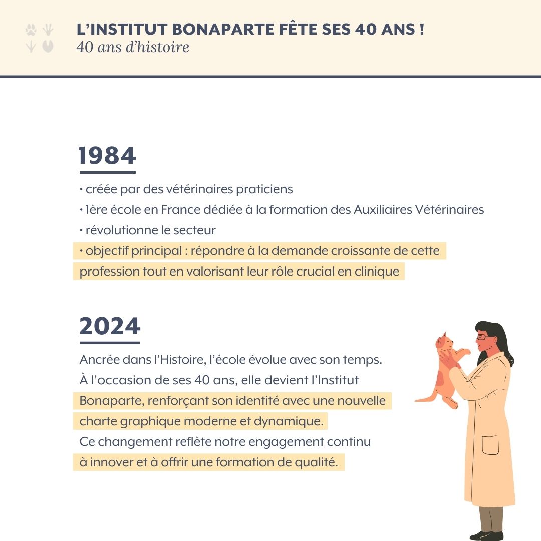 En 2024, l’école célèbre ses 40 ans d’existence. À cette occasion, elle franchit une étape symbolique et stratégique : elle devient officiellement l’Institut Bonaparte et adopte une nouvelle identité visuelle.